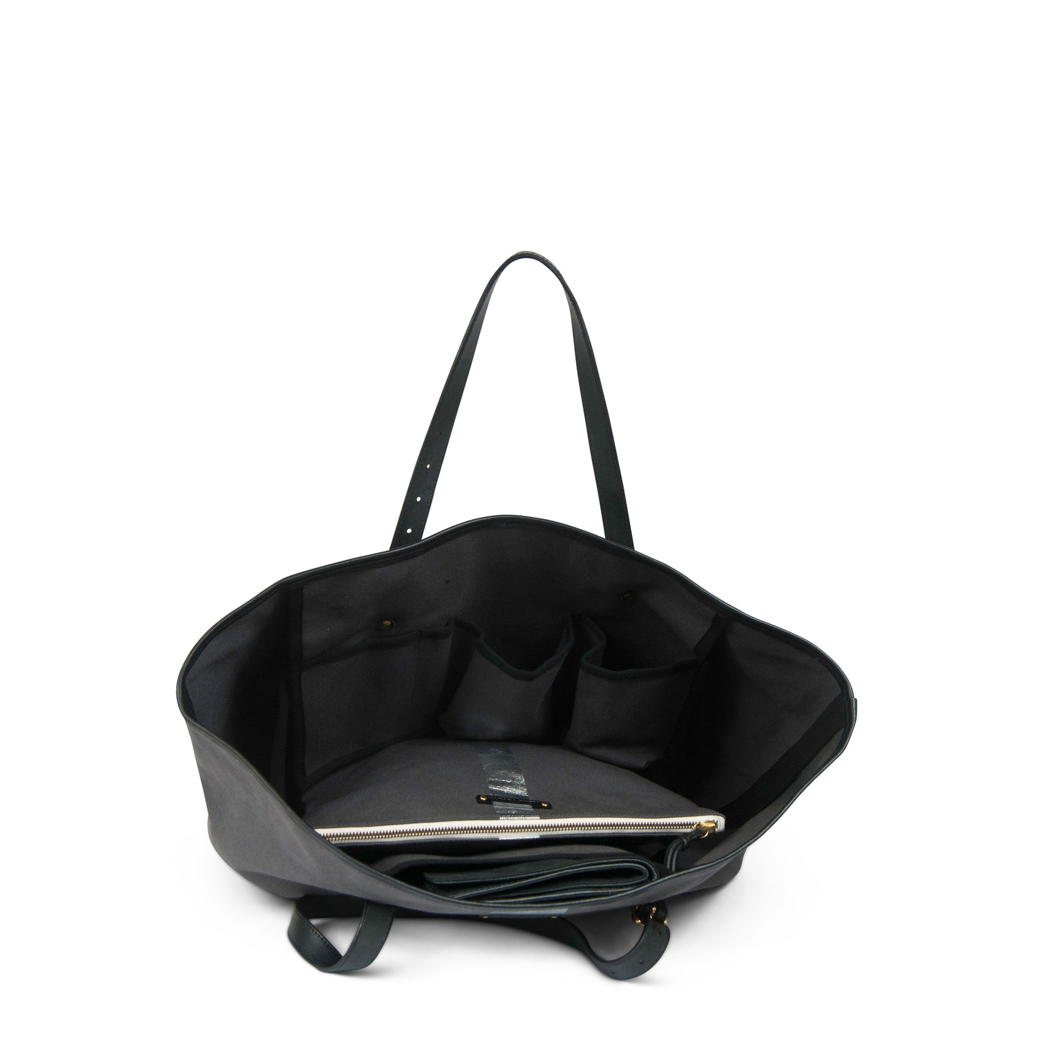 Handmade in our Brooklyn workshop. This is a technology-friendly diaper bag, featuring a laptop compartment for up to an 11" device, such as MacBook Air or iPads. The device compartment has large interior pockets which can be used for bottles/pumps/clothes and also features a changing mat, making it ideal for your baby bag needs.