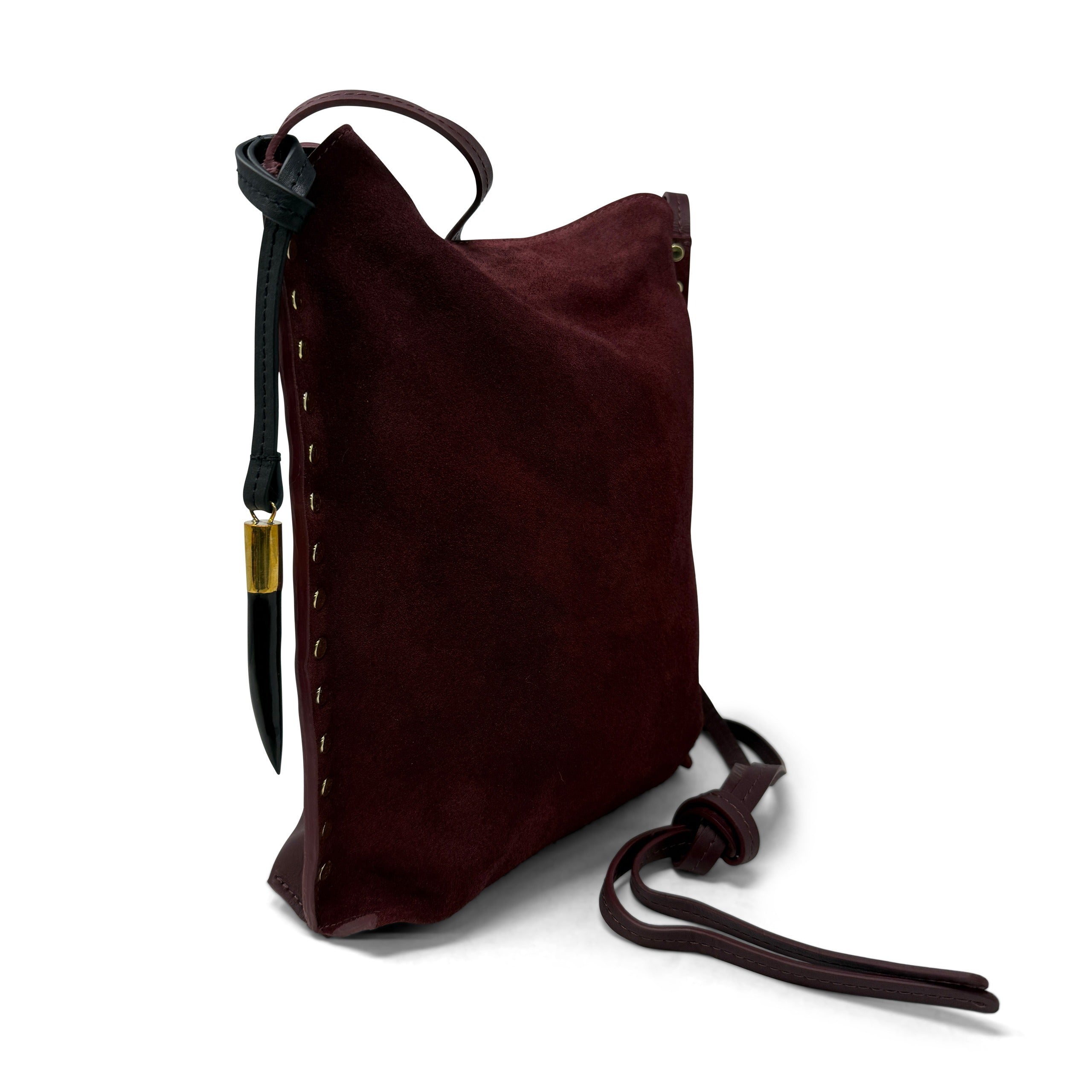 The Waterford Sling Bag is a sleek, hands-free essential in rich zinfandel leather and suede. One side smooth leather, the other soft suede, it's a tactile play of textures that elevates any outfit. Adjustable for the perfect fit, the strap lets you sling it comfortably across your body or wear it closer for a chic, top-forward look. Rivets along the edges and a large black toggle looped around the strap give the bag signature Kempton detail. Effortlessly stylish, the Waterford Sling Bag is ready for your day-to-day adventures.